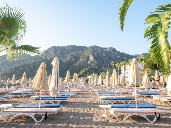 A szálloda strandja homokos és kavicsos, enyhe lejtéssel a tengerbe, mindössze kb. 30 méterre a szállodától. A vendégek számára ingyenesen rendelkezésre állnak napernyők, napozóágyak és matracok.