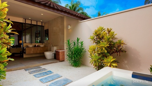 A tengerparti villák két fő részére készültek, egy pótágy lehetőségével felnőtteknek vagy két gyermeknek, és körülbelül 68 m?-esek. Egyénileg szabályozható légkondicionálással, mennyezeti ventilátorral, külső fürdőszobával (kád, zuhany, WC, hajszárító, köntös, papucs), valamint elhúzható üveggel a szoba és a fürdőszoba között rendelkeznek. A villákban vezeték nélküli internet, műholdas televízió, telefon, minibár (naponta vízzel feltöltve, fogyasztás szerint fizetendő), kávé- és teafőző készlet, széf, valamint vasaló és vasalódeszka (a recepción kölcsönözhető) található. Ingyenes kiságy 2 éves korig előzetes kérésre biztosított. A terasz asztallal és napozóágyakkal van felszerelve.