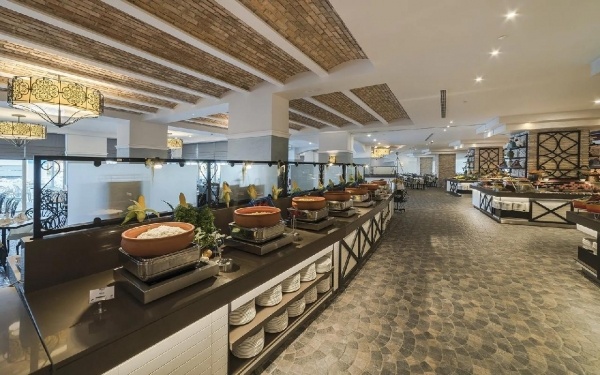 Ellátás: ultra all inclusive ellátás, benne: bőséges büféreggeli, ebéd és vacsora a főétteremben - nemzetközi és helyi fogásokkal, frissen készült ételekkel, látványkonyhával és éjjeli vacsora (00:00-02:00), könnyű grill ételek, pizzák és tésztafélék a snack étteremben (12:00-16:00), korlátlan és térítésmentes italfogyasztás az étkezések és a szálloda legtöbb bárjában, az italválaszték a szálloda által meghatározott helyi és import prémium márkás alkoholos, alkoholmentes italokra és koktélokra is vonatkozik azonban a palackozott italokra és a frissen facsart gyümölcslevekre nem alkalmazható. Sütemények, kávé és tea fogyasztása a lobby bárban (16.30-18.30), jégkrém a snack étteremben (16.00-18.00), a csúszdapark használata (7 különböző csúszda, 10:00-12:00 és 14:00 -17:30 között), a sportpályák használata, darts, asztalitenisz, fitneszterem, fedett medence, törökfürdő, szauna és gőzfürdő használata. A megjelölt időpontokon kívül illetve a szálloda egyes bárjaiban és a tematikus éttermeiben a fogyasztás térítés ellenében.