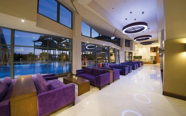 Modern és luxus szálloda közvetlenül a tengerparton Larában, kb. 13 km-re a nemzetközi repülőtértől és kb. 22 km-re Antalya városközpontjától; bevásárlási lehetőségek közvetlenül a szálloda előtt.