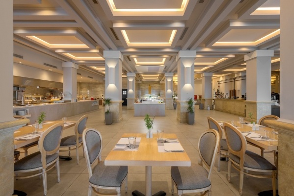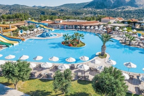 A festői Kiotari-öbölben fekvő 5 csillagos, 527 szobás 5 csillagos luxus szállodakomplexum kiváló All Inclusive ellátással büszkélkedhet, lenyűgöző kilátással az Égei-tengerre, valamint parkosított kertekkel, lagúna kialakítású medencékkel.