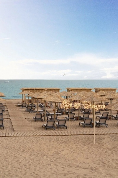 A szálloda saját homokos tengerpartja (a bejáratnál apró kavicsokkal) kb. 250 m-re található a szállodától. A napernyők, napágyak és törölközők ingyenesen rendelkezésre állnak. A tengerparti bár az Ultra All Inclusive szolgáltatás részeként elérhető, valamint pavilonok is (díj ellenében).