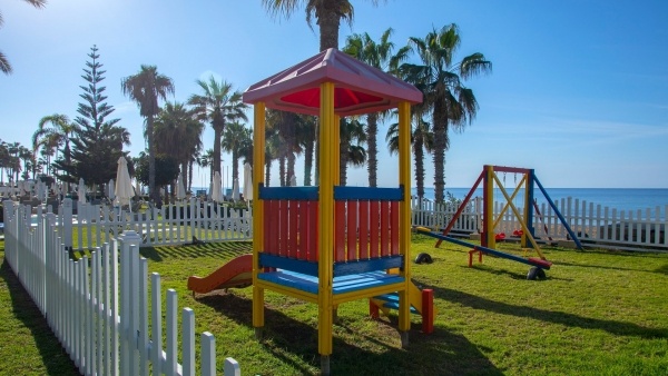 A szálloda előtt elterülő, nyilvános homokos-köves strand fokozatosan mélyül a tenger felé, így ideális a fürdőzéshez és a pihenéshez egyaránt. A part kék zászlós minősítéssel rendelkezik, amely a kiváló vízminőséget és a rendezett környezetet garantálja. A strand egy kényelmes ösvényen keresztül közelíthető meg, a napernyők és napágyak pedig térítés ellenében vehetők igénybe.