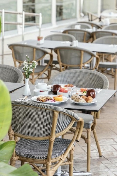 Étkezés: prémium all inclusive ellátás. Tartalmazza: svédasztalos reggeli (07.00-10.00), ebéd (12.30-15.00) és vacsora (18.30-21.30), a főétkezések között büfésarok snack ételekkel, délutáni kávé és sütemény, helyi jégkrémek, korlátlan italfogyasztás 10-24 óra között: a szálloda által megjelölt helyi és nemzetközi röviditalok széles választéka, koktélok, sörök, borok, gyümölcslé, szénsavas üdítőitalok, ásványvíz, kávé, tea. Térítésmentes átfoglalási lehetőség a görög étterembe (1 alkalommal). Ebédcsomag készítése (amennyiben a napot nem a szállodában töltik), mely szendvicseket, gyümölcsöt, édességet, ásványvizet és gyümölcslét tartalmaz (24 órával korábban a recepción kell igényelni).