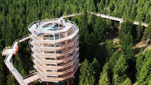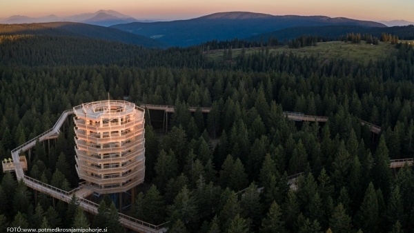 Kora délután tovább utazunk, hogy egy lélegzetelállító sétát tegyünk az erdőben, de nem akárhogyan, hanem a fák lombkoronaszintjén. Egy órás utazást követően érkezünk meg a Rogla-hegységben található Lombkorona-sétányhoz, ahol egy 1 km-es sétaút vár ránk 20 méterrel a föld fölött. A panorámát tovább emeli a 37 méter magas kilátótorony, ahonnan a bátrabbak le is csúszhatnak az óriás csúszdán, ha kedvük tartja.