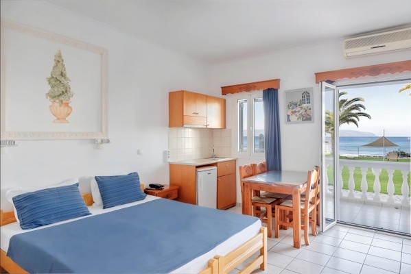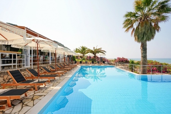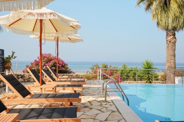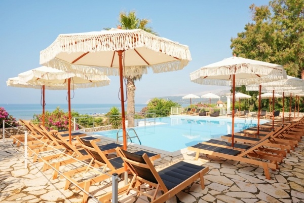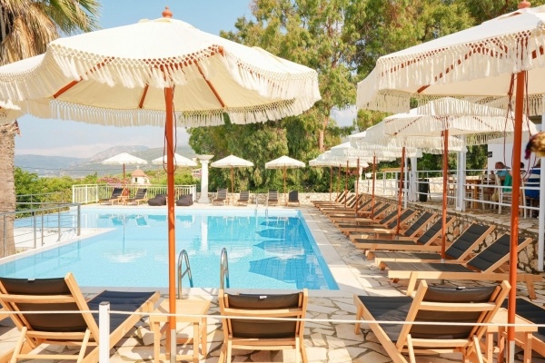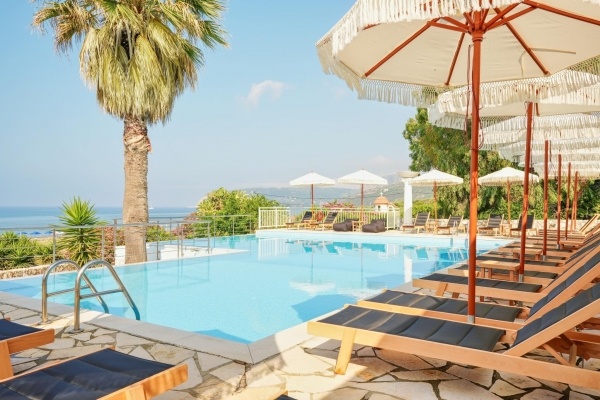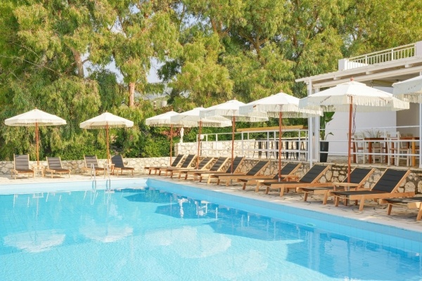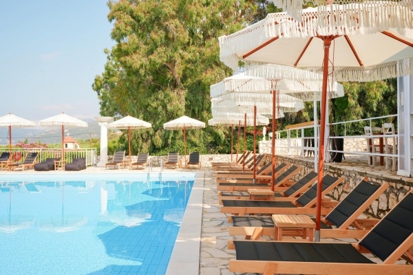 A szálloda a híres és nyüzsgő Skalától kb. 3 km-re található, a festői Mounda öbölben. A családi vezetés alatt álló létesítmény egy gondozott kertben helyezkedik el, amely a sziget egyik legszebb, a turistaforgalomtól érintetlen strandjában végződik. A szobákból, valamint a szálloda egyes részeiből egyedülálló kilátás nyílik a Jón-tenger türkizkék vizére. A buszmegálló kb. 2 km-re található. Minden korosztály számára ajánljuk.