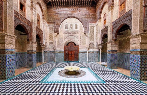 Egész napos (többnyire gyalogos) városnézés FEZ-AL BALI-ban, Marokkó vallási és kulturális központjában, Medinájában, melynek több mint kilencezer kanyargós, keskeny utcája megőrizte VIII. századi hangulatát, és a világörökség részét képezi. A kézművesipar fellegvárában láthatunk szőnyegkészítőket, réz- és fémműveseket, bőrfeldolgozókat, selyemszövőket, textilkészítőket stb. Megcsodáljuk a kék-zöld Bab Bou Jeloud Kaput, a Nejjarine teret szép kútjával, II. Moulay Idriss emlékhelyét és a híres Kairaouine Egyetemet. Ebéd a városban. A marokkói építészet díszítőművészetét egy Medreszében, azaz korán iskolában tekintjük meg. Felfedezzük a zsidónegyedet, a mellah szép balkonjait, a királyi palota csodás kapuját, Fez-el-Jded és Ville Nouvelle utcáit. Este helyi tipikus fogásokból (pl. Pastilla) álló, fakultatív zenés vacsora. Szállás Fezben.