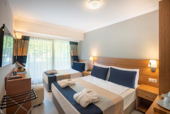 - All Inclusive: Reggeli, ebéd és vacsora büférendszerben, késői reggeli (10:00-10:30), éjféli leves (23:00-01:00), napközbeni snackek, kávé/tea és sütemények, gözleme és fagylalt bizonyos időpontokban, helyi alkoholos és alkoholmentes italok (10:00-24:00), érkezéskor üdítőkkel és vízzel, később csak vízzel naponta feltöltött minibár. 2 a'la carte étterem (mediterrán és török, a tartózkodás során 1 alkalommal, előzetes asztalfoglalással).
