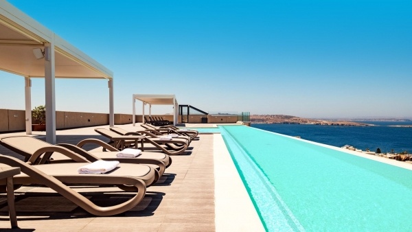 SPORT ÉS SZÓRAKOZÁS: végtelenített medence a tetőn, téglalap alakú, édesvíz, mélység kb. 1,5-1,7 m, ingyenes napozóágyak és törölközők a medence mellett; fitnesz terem.
