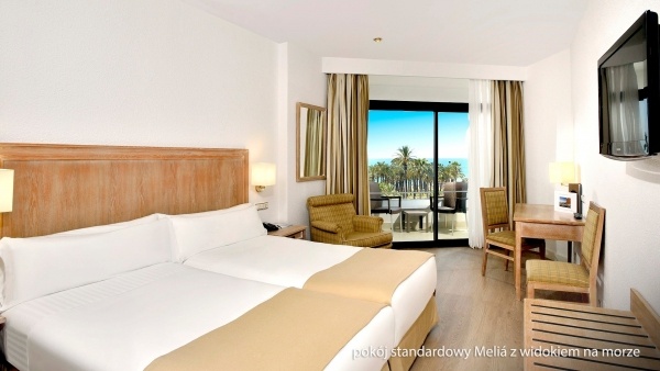Standard Meliá tengerre néző kilátással: Körülbelül 30 m?-es, gondozott szoba, egyedileg szabályozható klímával. A fürdőszobában zuhanyzó, WC, hajszárító és kozmetikai készlet található. A szobában vezeték nélküli internet, műholdas TV, telefon, vízforraló és széf áll rendelkezésre. Felár ellenében minibár (fogyasztás szerint) is igénybe vehető. Ingyenes kiságy 2 éves korig érkezés előtti megrendelésre biztosított. Az erkély asztallal és székekkel van berendezve, tengerre néző kilátással.