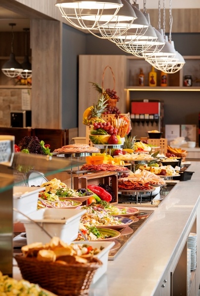 reggeli (7.30-10.00), ebéd (12.30-14.30), vacsora (18.00-21.00) büfé formájában a fő étteremben, késői reggeli (szendvicsek) a snack bárban (10.00-11.00)