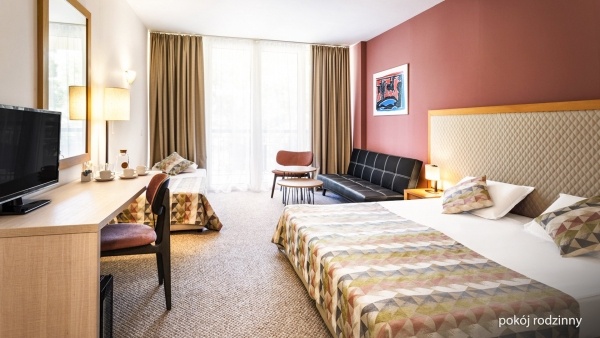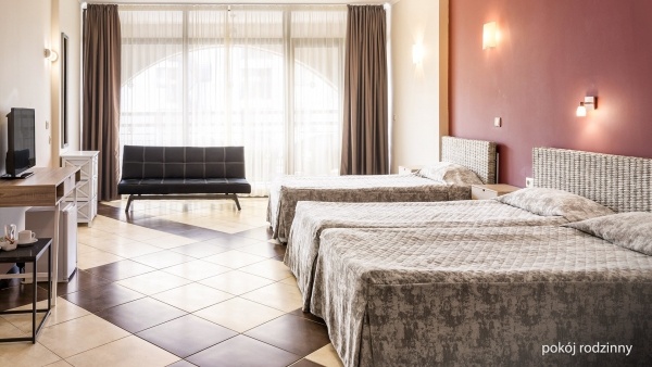 A családi szoba szintén kb. 37 m? alapterületű és három fő elhelyezésére alkalmas, gyerekek részére pótágy biztosítható. A szoba felszereltsége megegyezik a standard szobáéval: légkondicionáló, fürdőszoba (kád vagy zuhany, WC, hajszárító), műholdas televízió, telefon, széf, hűtőszekrény, valamint ingyenes kiságy 2 éves korig. A szobához bútorozott erkély is tartozik. Családi szoba két hálószobával