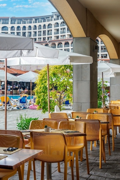 3 lobby bár (1 minden épületben, a szezonon kívüli elérhető bárok száma a telítettségtől függően változhat), snack bár a medencénél, Kafergarten bár (nyitva: július-augusztus), tengerparti bár (nyitva: 06.01-09.15)