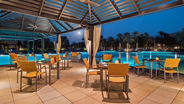 A szállodában öt étterem és két bár kínál különböző étkezési élményeket a vendégek számára. A fő étterem, az Al Majlis büfé jellegű ételekkel és nemzetközi konyhával várja a vendégeket, ahol show cooking is elérhető. Emellett két ? la carte étterem is található: a Sensasia, mely thai és ázsiai konyhát kínál, és a La Cucine, amely olasz ételekre specializálódott. A Bahari Grill snack étterem a tengerparton található, grillezett ételekkel és koktélokkal várja a látogatókat. Két bár is található a szállodában: az Al Moltaqa, mely a medencére néző terasszal rendelkezik, és a Bliss, amely a szálloda diszkójában helyezkedik el. A szálloda teljes ellátást kínál felár ellenében, amely magában foglalja a reggelit (7:00-10:30), ebédet (13:00-15:00) és vacsorát (18:30-22:00) büfé formájában az Al Majlis étteremben. Az üdítőitalok és helyi alkoholos italok a kijelölt bárokban 10:30 és 24:00 között elérhetők. Az all inclusive karszalag viselése kötelező.
