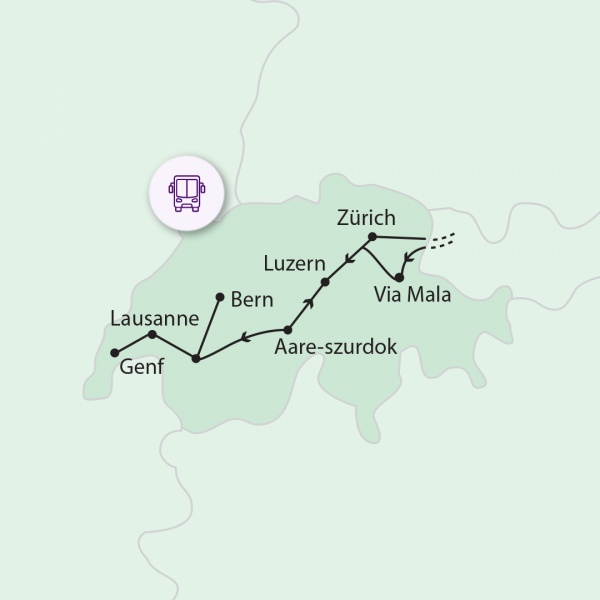 Reggeli után tovább utazunk Svájcba. A Rajna völgyében haladva érjük el a több írót és költőt is megihlető világhírű Via Malát. Ezt a lenyűgöző szurdokot a Hátsó-Rajna vize alakította ki a 3.000 m magas hegycsúcsok között. Megállunk és lesétálhatunk a szépen kialakított lépcsősoron a szurdok hasadékához. Ha valaki nem szándékozik legyalogolni, akkor ő a fenti kőhídról tud szép felvételeket készíteni. Ezt követően a Pilatus-hegy lábához buszozunk. Innen lanovkát használva megyünk fel a közel 2.000 m magas csúcsra. Fentről mesés látvány tárul elénk a Vierwaldstätti-tóra és környékére. Majd a világ legmeredekebb fogaskerekűjével jövünk le a hegy másik oldalán. Ezután Luzernt keressük fel. Gyalogos városnézésünk során megtekintjük a híres fedett fahidat, mely a XIV. században épült, és több mint 200 m hosszú. 1993-ban nagy része leégett, de újjáépítették. Sétánkat folytatva gyönyörködünk a festett falú céhes házakban és a Városházában, közben sétálunk a tóparton is. Ezt követően közép-svájci szállásunkra buszozunk.