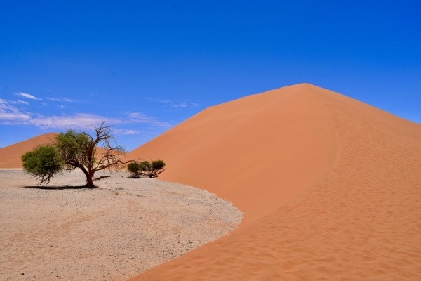 Kora reggeli órákban indul a túránk a Namib Naukluft Nemzeti Parkba. A hőséget megelőzve buszunkkal a Namíbiára oly jellemző sivatagi homokdűnék mellett haladunk, amelyek vörös színe látványos kontrasztban van a kék éggel. Utunk első állomásán 4 kerék meghajtású terepjárókba szállunk, amivel eljutunk a Sosussvlei-ig. Onnan gyalogosan megyünk az ikonikus Deadvlei-ig, ahol 900 éves égnek meredő fatörzseket látunk, amelyek a rendkívül száraz éghajlat következtében kövesedtek meg. A túra második felében megállunk többek között a leghíresebb Dune 45 nevű dűne alatt, amely 170 méter magas és aki fittnek érzi magát felmászhat a tetejére, ahonnan gyönyörű panoráma nyílik a lélegzetelállító tájra. Utolsó állomásunk a Sesriem Kanyon, aminek kétoldalt magasodó kőfalai között valamikor sebes folyó vágtatott és festői sziklaformátumait gyalogosan fedezzük fel. Vacsora a szálláson.