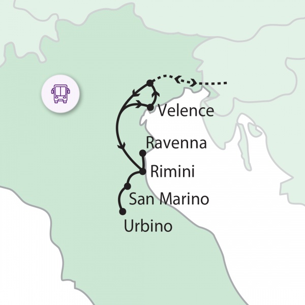 Ezen a napon utasaink eldönthetik, hogy továbbra is a tengerpart nyújtotta nyugodt kikapcsolódást választják, vagy eljönnek velünk egy fakultatív kirándulásra. Elsőként az egyedi hangulatú, több mint 2.000 éves városba, Urbinóba megyünk. Reneszánsz stílusú történelmi magja miatt a város felkerült az UNESCO Világörökségei közé. Urbino fő látványossága a Raffaello szülőház, melyet belülről is megtekintünk, és a Dózse Palota, melyben főként olasz művészek alkotásaiból összeállított kiállítás található. A belvárosban sétálva fel-fel tűnik a város fölé magasodó vár, majd felkeressük a Dómot is. Az ezt követő rövid szabadprogram után indulunk vissza Rimini irányába. Útközben napunk második látnivalója Castello di Gradara lesz, ezt követően visszatérünk szállásunkra. Fakultatív Urbino - Castello di Gradara kirándulás (3 belépővel): 19.500,- Ft.
