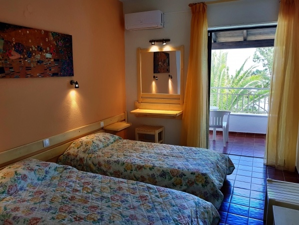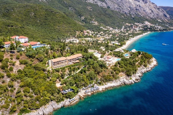 A családias hangulatú, komplexum egy főépületből és 4 melléképületből áll. A sziget északkeleti részén, egy sziklán helyezkedik el, ahonnan gyönyörű kilátás nyílik a tengerre, ahova a szálloda alatt található mólón lehet kijutni. A közeli Barbati strand kb. 15 perces sétával érhető el. A közelben vásárlási lehetőségek, tavernák és bárok. A szálloda ingyenes, időszakosan közlekedő transzfert kínál a vendégeknek a barbati strandra.