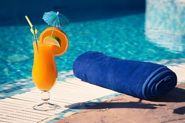 A szállodához tartozó fizetős strandrész júniustól szeptemberig várja a vendégeket, ahol kényelmes, napozásra kialakított fa platformok állnak rendelkezésre, a tengerhez pedig létrán lehet leereszkedni. A napernyők és napágyak itt térítés ellenében vehetők igénybe. A közelben található nyilvános, köves strand enyhe lejtéssel vezet a tengerhez, és helyi úton vagy tömegközlekedéssel könnyen megközelíthető. Itt is elérhetők napernyők és napozóágyak, szintén díj ellenében.