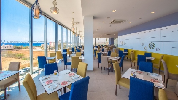 A Rainbow étterem svédasztalos rendszerben kínál nemzetközi és mediterrán ételeket, a gyermekek számára pedig etetőszékek is rendelkezésre állnak. A vendégek kényelmét medence melletti bár is szolgálja.