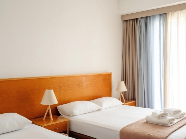 A szállodakomplexum főépületből és földszintes bungalóépületből áll. Peloponnészosz nyugati részén, csendes környezetben, egy szépen gondozott kertben található, közvetlenül egy kavicsos/homokos strand felett. A létestíményből csodálatos kilátás nyílik a Patrasz-öböl-re. A kb. 3,5 km-re fekvő Kato Achaia városába helyi buszokkal is le lehet jutni, és több taverna, kávézó és kis üzlet is rendelkezésre áll. Ideális választás párok és egyedül utazók számára.