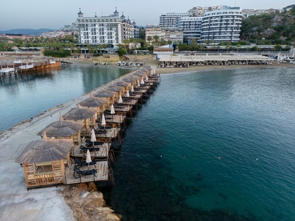 vendégek kényelmes fürdőzéséhez. A strandon egy 40 m hosszú móló és két hullámtörő is található .