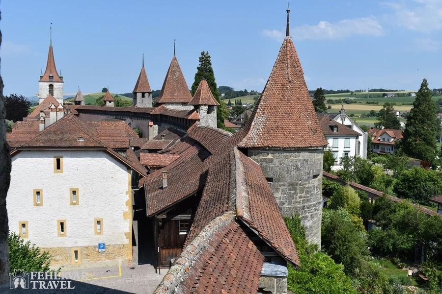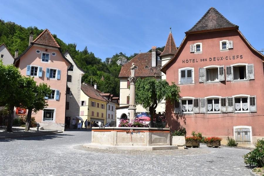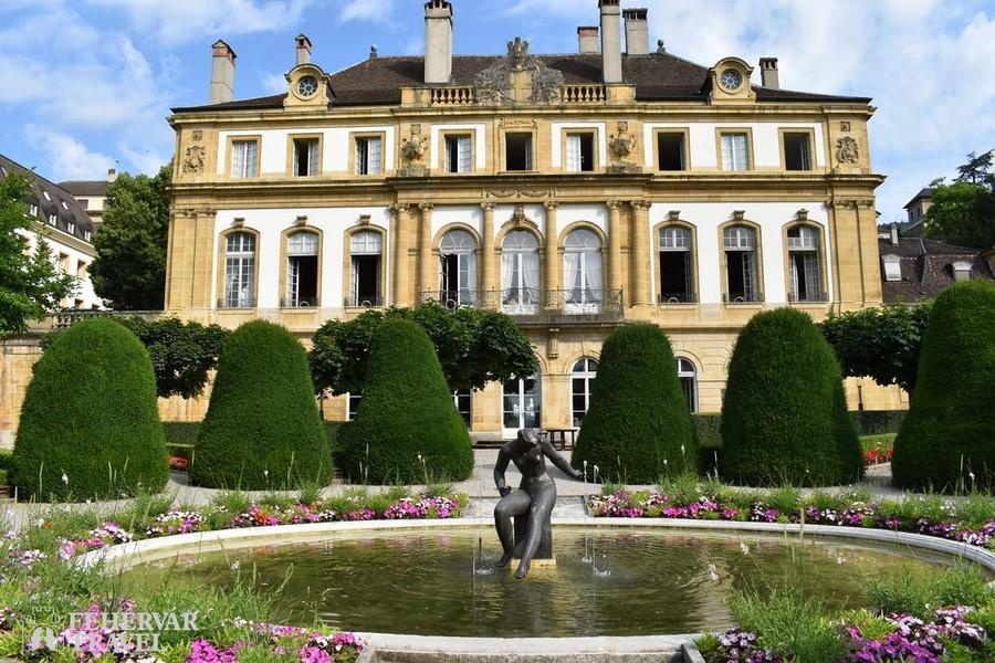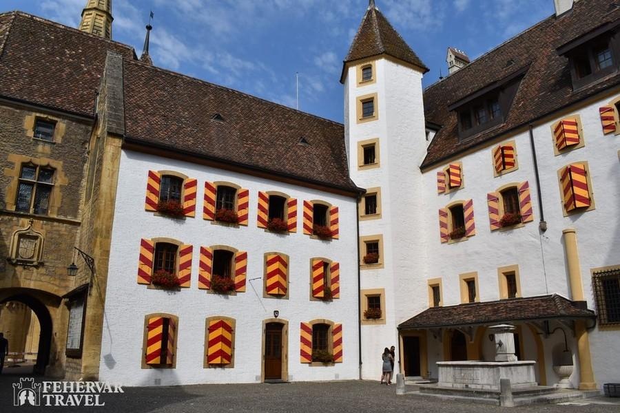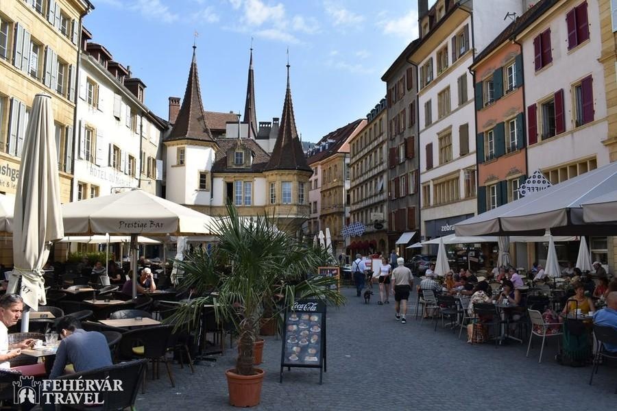Búcsú az Alpoktól, utazás tipikus dimbes-dombos mittellandi tájakon keresztül a nagyobb részt németajkú Murtenbe. A látványos falakkal körülvett tóparti település színes, árkádos házaival, szökőkútjaival és gazdag történelmi örökségével Svájc egy újabb középkorból itt felejtett gyöngyszeme. A városnézés fénypontját a városfalakra való felmenetel és a falakon tett séta jelenti majd.A déli órákban továbbutazás Neuchâtelbe, amely az azonos nevű tó és a Jura hegység lejtői közé szorítva terül el. A látványos fekvésű város hangulatos tóparti sétányaival, elegáns villáival, jellegzetes okkersárga színeivel és szép történelmi belvárosával kellemes meglepetés a látogatóknak. Különös értéket képviselnek a Collégiale-templom középkori szobrai és faragásai. A közös séta után szabadidő, majd továbbutazás a Jura hegységen keresztül Saint-Ursanne-be.Már Saint-Ursanne megközelítése is látványos: a szurdokvölgyet alkotó Doubs folyó parányi, középkori hídján átkelve egyfajta időutazásban lesz részünk. Séta az ódon házak között, illetve látogatás az értékes XII. századi apátsági templomban és kerengőjében.Szállás a svájci–francia–német hármas határ közelében (1 éj).