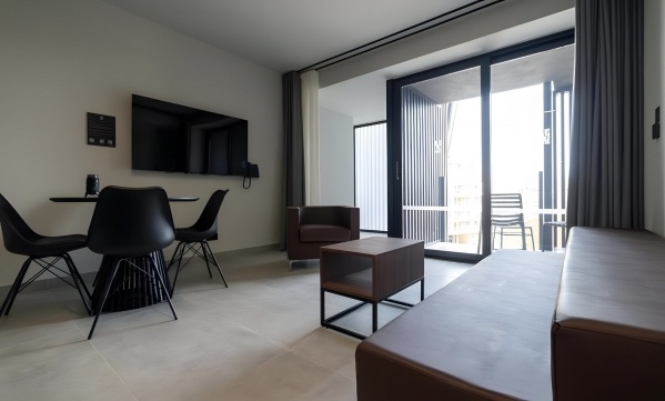 A két hálószobás apartmanok kb. 70 m?-esek, négy fő elhelyezésére alkalmasak. Két külön hálószobájuk van, valamint felszerelt konyhasarokkal rendelkeznek (sütő, mikrohullámú sütő, indukciós főzőlap, mosogatógép). Zuhanyzós fürdőszoba, légkondicionálás, műholdas televízió, telefon, széf, kávé-/teafőző készlet és erkély (asztallal és székekkel) tartozik hozzájuk, városi kilátással.