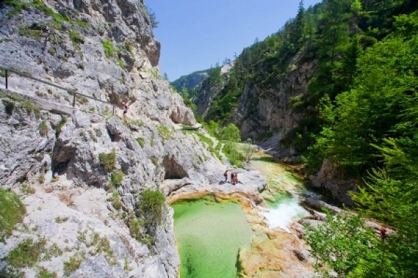 Az Ötscher-patak vájta szurdokban több kilométer hosszan fut egy jól kiépített turistaútvonal. Az ösvény hol a szurdok egyik, hol a másik oldalán vezet. Utunk során fahidakkal, fapallókkal, sziklába vájt alagutakkal találkozhatunk, miközben lábunk alatt a kristálytiszta patak csobog, körülöttünk pedig a több méter magas sziklafalakról lezúduló vízesések garantálják a látványt. A napsütötte szurdok oldalán különös sziklaformációk emelkednek ki. Első nagyobb vízesésünk a Lassingfall, melyet több kilátópontból is megcsodálhatunk. A völgyben egy menedékházat is találunk, ahol a helyi specialitásokat kóstolhatjuk meg. A kitartóbbak a Mirafall vízeséshez is elzarándokolhatnak, mely kb. 80 méter magasságból zúdul le a lábunk elé. Erdei szerpentines ösvényen jutunk ki a szurdokvölgyből, kisebb vízimalmot, hegyi réteket, fenyveseket hagyunk magunk mögött, hogy egy hatalmas víztározó gátján is keresztülsétáljunk. Napunk végén a mariazelli kisvasút rövid szakaszán utazunk vissza buszunkhoz. A vadregényes környezet garantáltan felejthetetlen élményt jelent mindenkinek, aki legalább egyszer ellátogat ide. Hazaérkezés a késő esti órákban.