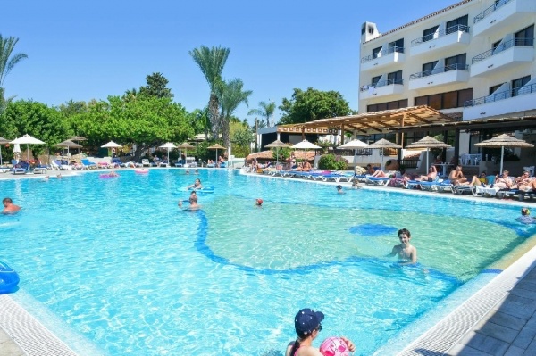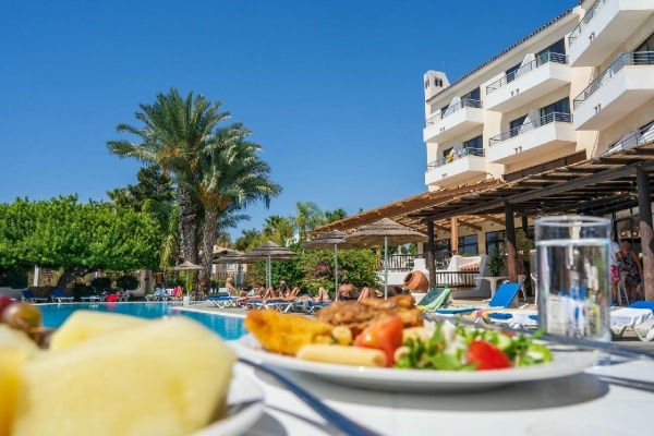 Fekvése: Paphos üdülőövezeti, Kato Paphos elnevezésű részén, a tengerpartól és a több kilométer hosszú sétánytól ~400 méterre, a városi leghíresebb szállodasora és a Posseidonos Avenue közelében (200m) épült, rendkívül népszerű, hangulatos mediterrán kerttel rendelkező, apartmanhotel jellegű szálláshely. A szálloda épületei mediterrán stílusban készültek, a nagy parkosított terület kellemes kikapcsolódást biztosít a vendégek számára.A szálloda környéki legtöbb partszakasz sziklás, azonban a hotelhez legközelebbi strand (Sodap Beach) festői környezetben homokos parton található mindösszesen 400 méternyire. A szállás ideális választás mind a családok, mind a pihenésre vágyók számára. A nyüzsgő városközpont könnyen elérhető gyalogosan vagy tömegközlekedéssel. Paphos városközpontja és a kikötő 2 km-re fekszik.A térség egyik legszebb strandja a Coral Bay kb. 10 km-re (taxival ~15 euró) található. Buszmegálló a szálloda közelében (a buszjegy ára kb. 1,50 euró).