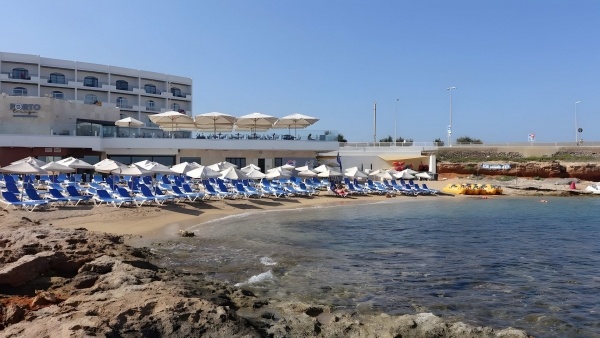 A szállodától mindössze körülbelül 100 méterre, egy helyi úton át megközelíthető kisebb, privát homokos strand található, ahol a vendégek számára a napágyak és napernyők ingyenesen biztosítottak.