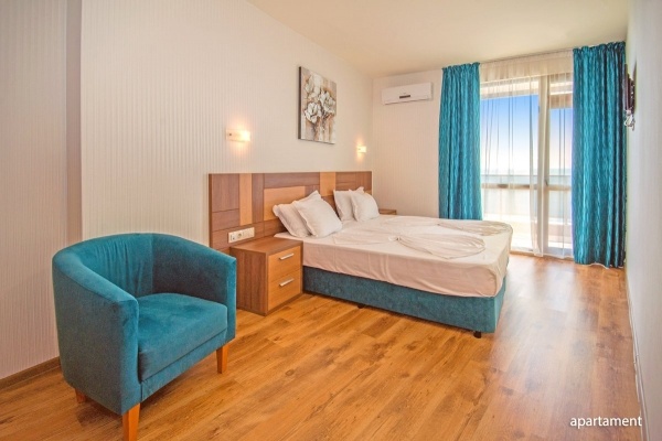 Tengerre néző apartman: A szálloda 4 emeletes épületében található, és 4 fő számára ideális. Az apartman mérete kb. 50 m?, nappalival és hálószobával, amelyek ajtóval elválasztottak. Légkondicionált, fürdőszobával (zuhanyzó, WC, hajszárító), vezeték nélküli internettel, műholdas televízióval, telefonnal, hűtőszekrénnyel és széffel felszerelt. Ingyenes kiságy biztosított 2 éves korig, amelyet érkezés előtt lehet megrendelni. Az apartman tengerre néző kilátással rendelkezik.