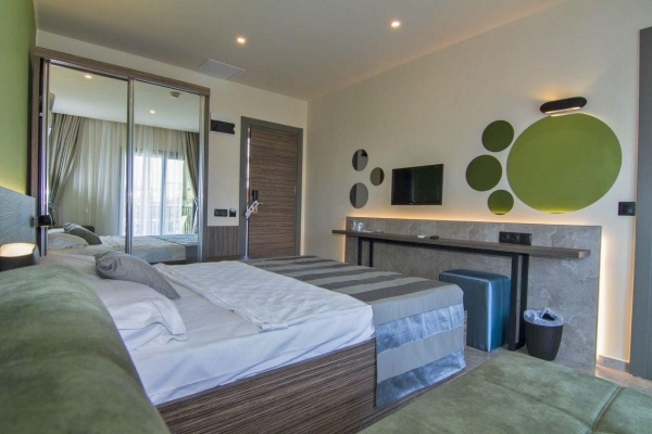 A családi vezhetés alatt álló szálloda egy homokos/kavicsos strandon található, Gümbet nyüzsgő központjában, Bodrumtól kb. 3 km-re, amely helyi minibuszokkal vagy taxikkal könnyen megközelíthető (megálló a szálloda előtt). Lassan mélyülő tengerpartja, csúszdái és miniklubja miatt kitűnő választás gyermekes családok számára.