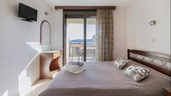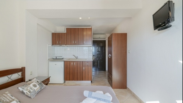 Modern berendezésű, kisebb alapterületű szobák. Alexandrion házunkkal szemben, Sarti ófalu részén található.