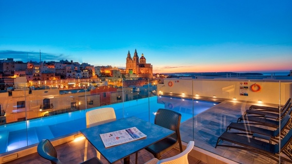 A szálloda egy dombon fekszik, mindössze körülbelül 200 méterre Mellieha központjától, ahol boltok, bárok és éttermek várják a vendégeket. Az Imgiebah kilátó mintegy 3,5 km-re, a Poppeye Village vidámpark 5 km-re, a máltai óceánárium pedig 10 km-re található. Valletta, a főváros, körülbelül 25 km-re helyezkedik el. A közlekedés kényelmes, a legközelebbi buszmegálló 180 méterre van, a Gozo szigetére induló kompok kikötője pedig mintegy 6,5 km-re található. A máltai nemzetközi repülőtér körülbelül 25 km távolságra fekszik a szállodától.