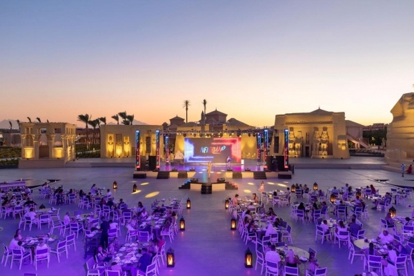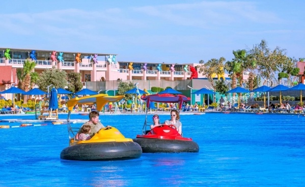 A vendégek rendelkezésére áll az előcsarnok recepcióval, pénzváltó, 4 étterem, 8 bár a hotel különböző területein. A komplexum része Hurghada legnagyobb vízi vidámparkjának, ahol tizenhat medence (kettő télen fűtött és kilenc közülük gyermekek számára kialakított résszel), három gyermekmedence és számos csúszda különböző korosztályok részére, tavak, folyók és más vízi attrakciók találhatók. A gyermekek részére játszótér biztosított.