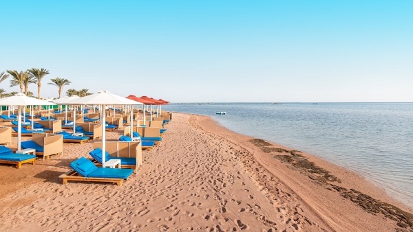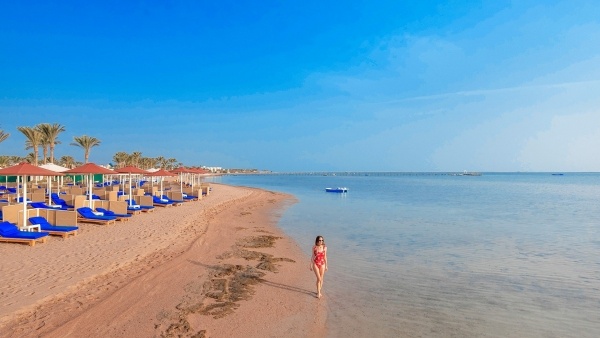 A szállodához tartozó strand finom homokos parttal várja a vendégeket, ahol a tenger felé enyhén lejtő partszakasz biztosít kényelmes megközelítést. A korallos tengerfenék miatt ajánlott védőcipőt viselni, a vízbe jutást pedig egy mintegy 250 méter hosszú móló könnyíti meg. Maga a strandterület körülbelül 450 méter hosszú, így bőséges hely áll rendelkezésre a napozáshoz és a pihenéshez. A vendégek számára ingyenesen biztosítják a napernyőket, napozóágyakat, matracokat és a strandtörölközőket, így minden adott a gondtalan tengerparti kikapcsolódáshoz.