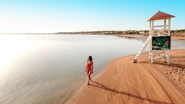 A szállodához tartozó strand finom homokos parttal várja a vendégeket, ahol a tenger felé enyhén lejtő partszakasz biztosít kényelmes megközelítést. A korallos tengerfenék miatt ajánlott védőcipőt viselni, a vízbe jutást pedig egy mintegy 250 méter hosszú móló könnyíti meg. Maga a strandterület körülbelül 450 méter hosszú, így bőséges hely áll rendelkezésre a napozáshoz és a pihenéshez. A vendégek számára ingyenesen biztosítják a napernyőket, napozóágyakat, matracokat és a strandtörölközőket, így minden adott a gondtalan tengerparti kikapcsolódáshoz.