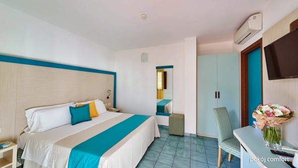 Comfort szoba: 2 személyes, kb. 20 m?, légkondicionált, fürdőszobával (WC, zuhanyzó, hajszárító). A szoba felszereltségében vezeték nélküli internet, TV, telefon, széf és minibár található (a fogyasztás szerint fizetendő). Az erkély vagy terasz ideális hely a pihenésre.