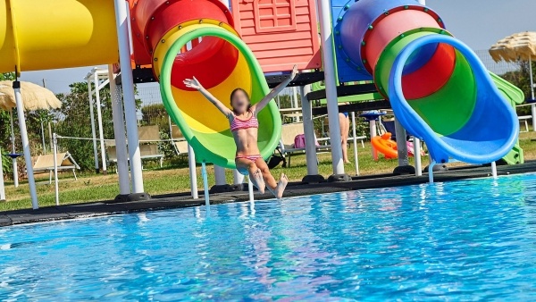 A szállodában 3 medence található, a főmedence 3 csúszdával, egy sportuszoda és egy külön gyermekpancsoló. A medencék mellett ingyenesen használható napernyők és napozóágyak biztosítják a kényelmet. A szállodában tornaterem és játszótér is rendelkezésre áll.