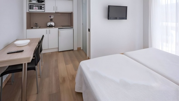 A kényelmes, körülbelül 18 m?-es stúdiók kétágyas elhelyezést kínálnak, egy pótágy elhelyezésének lehetőségével. A szobák légkondicionáltak, saját fürdőszobával rendelkeznek, amelyben zuhanyzó, wc, hajszárító és kozmetikai csomag található. A felszerelt konyhasarok indukciós főzőlappal, mikrohullámú sütővel, kenyérpirítóval, kis hűtőszekrénnyel és kérésre konyhai eszközökkel áll a vendégek rendelkezésére. A felszereltség része továbbá a vezeték nélküli internet, műholdas televízió és széf. Az erkély asztallal és székekkel berendezett, ahonnan a környékre nyílik kilátás. A PortAventura World belépőkkel foglalható stúdiók azonos felszereltségűek, és a szoba árában egy napos vidámparki belépők is benne foglaltatnak, így ideálisak a szórakozni vágyó vendégek számára.