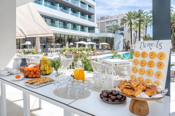 Az éttermek közül az egyik büfé jellegű ételeket kínál, mediterrán és nemzetközi konyhával, és gyermekek számára elérhető etetőszékekkel. A szállodában egy medence melletti bár is található.