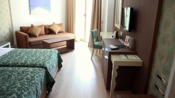 |A szobákat légkondicionáló berendezéssel, központi fűtéssel és fürdőszobával szerelték fel. A vendégek a teraszon, illetve az erkélyen is kényelembe helyezhetik magukat. A szobákban egy franciaágy vagy egy king size ágy található. A gyerekeknek kiságyat biztosítanak. Ezen kívül van széf és minbár is. Az alapfelszereltséghez tartozik egy tea-/kávéfőző is. Internet-hozzáférés, egy telefon, egy TV-készülék, egy rádió és WiFi is a vendégek kényelmét szolgálja a nyaralás alatt. A szobákban szobapapucs is található. Mozgáskorlátozottaknak kialakított szobák is foglalhatóak. A fürdőszobában zuhanyzó található. A fürdőszobában található hajszárító és fürdőköpenyek a mindennapi kényelmet szolgálják. A kényelemhez hozzájárul, hogy a fürdőszobákban kozmetikai cikkek is található(ak). Családi szobát és nem dohányzó szobát is foglalható.