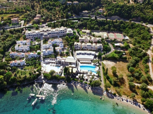 A gyönyörű 5 csillagos hotel a sziget keleti partja mentén Nikiana településen, Lefkada fővárosától 12 km-re, Nidri városától pedig 4 km-re található. A szálloda maximális kényelmet és kiváló szabadidős lehetőségeket kínál. Az üdülőhely 40 hektáros, parkosított területen terül el, közvetlenül a tengerparton.