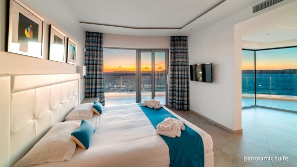 A 2018-ban felújított, modern és elegáns szálloda közvetlenül egy kisebb strand mellett fekszik, Málta északi részén, csendes, természeti szépségekben gazdag környezetben. A szálloda gyönyörű kilátást kínál Gozo és Comino szigeteire, ideális hely a nyugodt pihenéshez. Mellieha élénk turistaközpontja, számos üzlettel, bárral és étteremmel, mindössze kb. 5 km-re található. A közlekedés rendkívül kényelmes, mivel buszmegálló közvetlenül a szálloda előtt helyezkedik el. Valletta, a főváros, kb. 30 km-re, a repülőtér pedig körülbelül 27 km-re található.