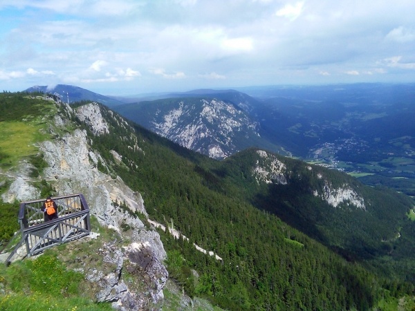 A völgy után természetesen a csúcsot is meghódítjuk. A hegyre a Raxseilbahn-nal juthatunk fel, melyet 1928-ban építettek. Ez az elsőként épült személyfelvonó Ausztriában. Az út 6-8 percig tart, de ez alatt megteszünk több mint ezer méter szintkülönbséget. Az emelkedéskor kitárul a táj előttünk és csodálatos kilátás nyílik a Schneebergre, valamint a környező hegyekre.