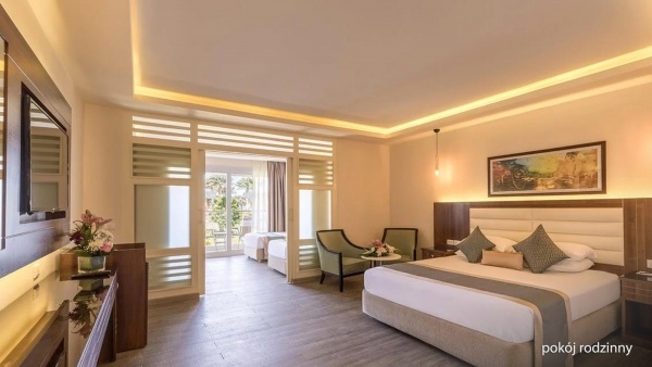 A szálloda egy elegáns, ötcsillagos üdülőkomplexum, amely 2004-ben épült, és 2016-ban részleges felújításon esett át, így modern és igényes környezetben fogadja vendégeit. Összesen 680 szobával rendelkezik, amelyek a főépületben és kisebb, öt szobás épületekben kaptak helyet, legfeljebb két emeletes kialakítással. A főépületben lift működik, amely kényelmes közlekedést biztosít. A tágas és elegáns előcsarnokban 24 órás recepció várja a vendégeket, emellett egy 60 fő befogadására alkalmas konferenciaközpont is rendelkezésre áll, ideális kisebb üzleti rendezvényekhez. A teraszról gyönyörű kilátás nyílik a látványos medencekomplexumra, a lobby területén pedig ingyenes vezeték nélküli internet érhető el. A fizetéshez Visa és MasterCard hitelkártyákat fogadnak el.