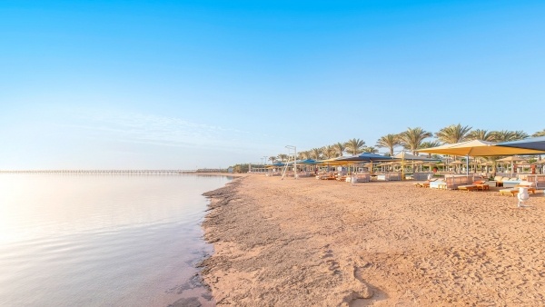 A szállodához tartozó, mintegy 300 méter hosszú homokos-kavicsos strand kellemes és kényelmes környezetet biztosít a pihenéshez. A part mentén sekély víz található korallos tengerfenékkel, ezért a biztonságos fürdőzés érdekében ajánlott védőcipőt viselni. A mélyebb víz könnyebben megközelíthető a körülbelül 630 méter hosszú mólón keresztül, amely a szálloda területéről kényelmesen elérhető. A strand teljes területén ingyenesen használhatók a napernyők, napozóágyak, matracok és törölközők, valamint egy bár is várja a vendégeket, frissítő italokkal és könnyű harapnivalókkal.