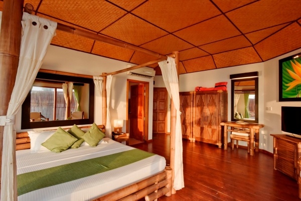 A tengerparti bungaló két fő számára ideális, és lehetőség van egy pótágy elhelyezésére is. Körülbelül 45 m?-es, légkondicionált, és a fürdőszobában kád vagy zuhanyzó, WC, hajszárító és kozmetikai készlet található. A szobában vezeték nélküli internet, műholdas televízió, telefon, kávé- és teafőző készlet, valamint minibár áll rendelkezésre. A terasz asztallal és székekkel van felszerelve, és közvetlen lejáratot biztosít a strandra, tengerre néző kilátással.