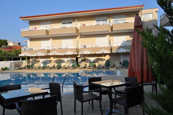 Sarti központjától kb. 250 méterre, a homokos tengerparttól pedig 150 méterre fekvő modern szálloda. A közelben vásárlási és étkezési lehetőség.